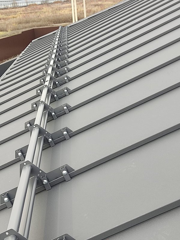 Комплект изготовлен из высококачественных материалов, устойчивых к коррозии и воздействию атмосферных осадков. Опоры и трубы выполнены из прочного металла, что гарантирует долгий срок службы. Крепления разработаны специально для композитной черепицы и сланца, обеспечивая надежное и безопасное крепление.
