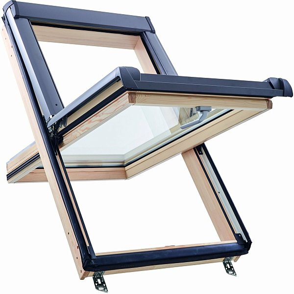 Окно R45 Н200 с термоблоком, 94х118 см, из дерева (однокамерное, среднеповоротное), Roto
