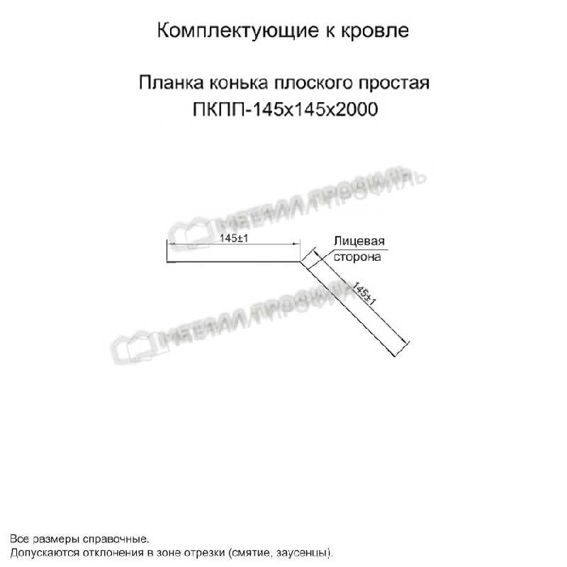 Планка конька плоского простая 145х145х2000 (ПЭ-01-3005-0.45)