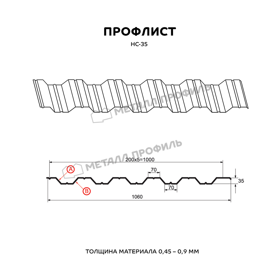 Профиль НС-35 имеет толщину 0,5 мм, что обеспечивает прочность и долговечность конструкции.