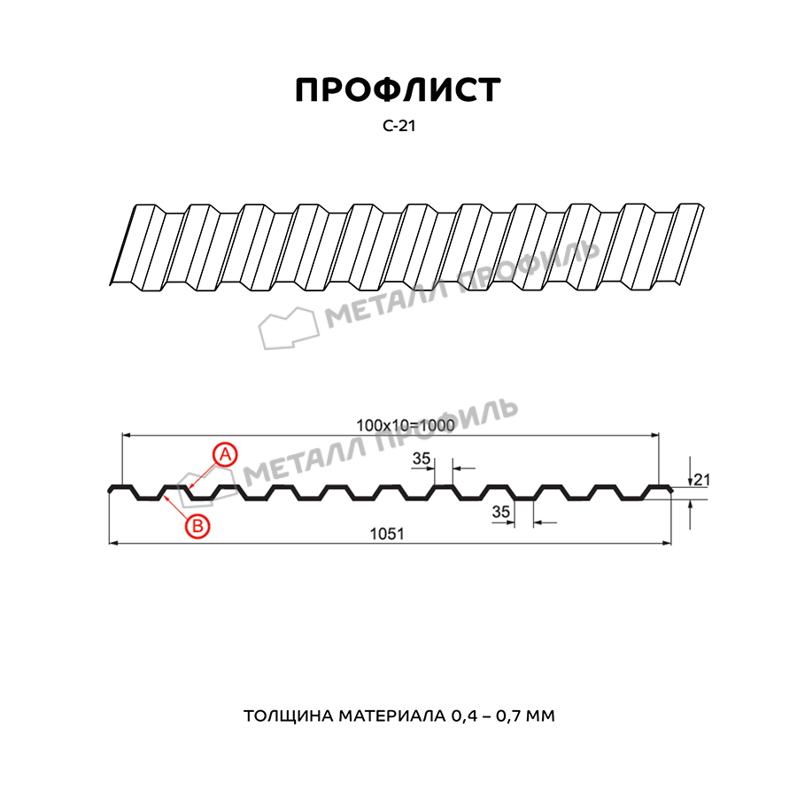 Профиль С-21 обладает прочной структурой и устойчив к воздействию внешних факторов, таких как влага, солнечные лучи и механические повреждения.