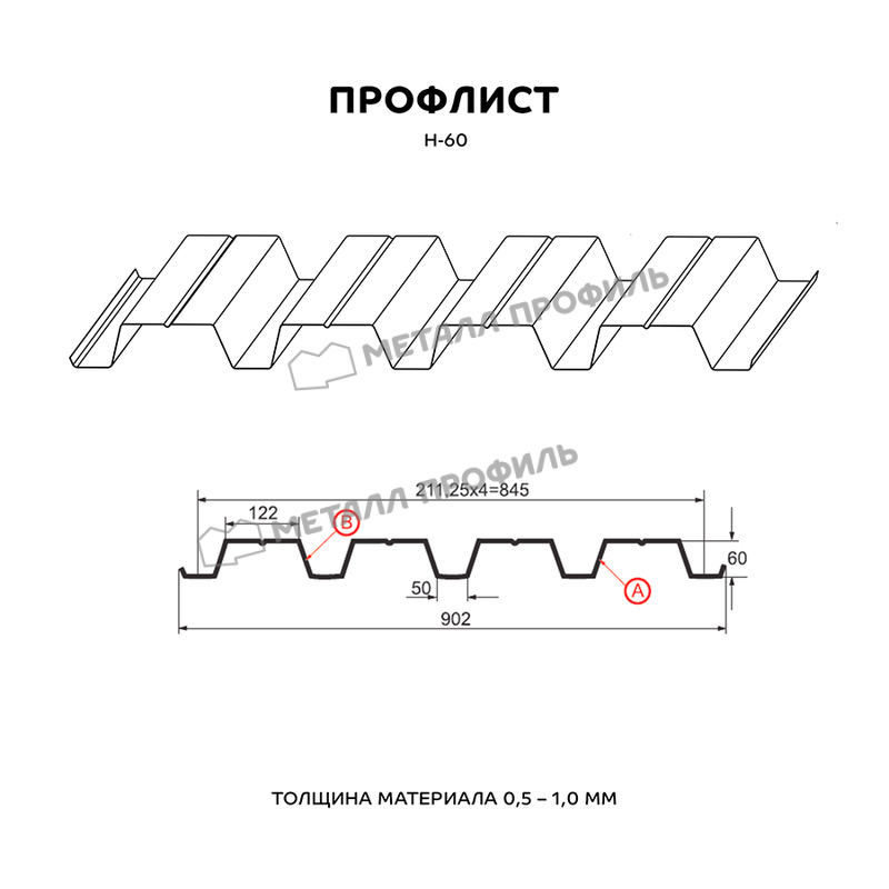 Профлист изготовлен из металла толщиной 0.7 мм, что обеспечивает ему прочность и долговечность. Он имеет форму Н-60, что позволяет использовать его для различных конструкций.