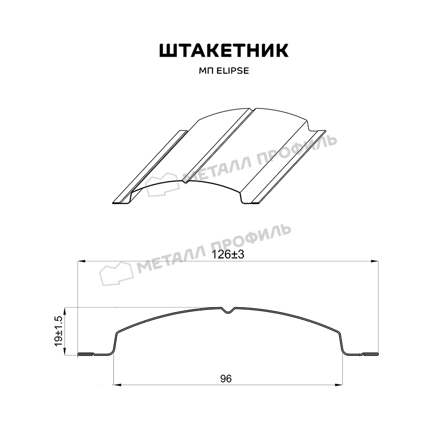 Штакетник Металл Профиль ELLIPSE-T 0,5 VALORI Grey
