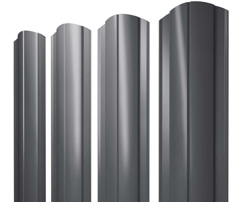 Штакетник Полукруглый Slim фигурный Grand Line 0,5 GreenCoat Pural BT, matt RR 23 Темно-Серый