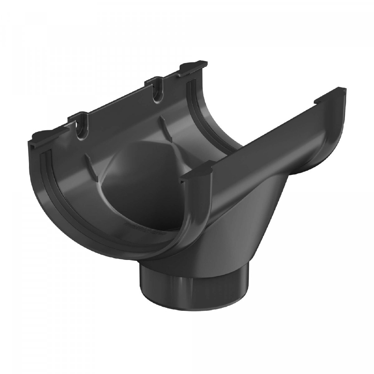 Воронка осуществляет отведение дождевой и талой воды из желоба в водосточные трубы. Соединение с желобом происходит с помощью защелок с резиновыми уплотнителями.
