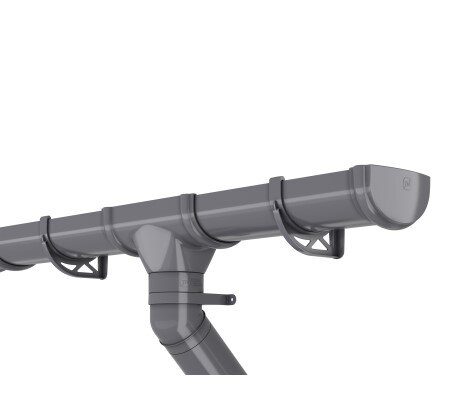 Воронка осуществляет отведение дождевой и талой воды из желоба в водосточные трубы. Соединение с желобом происходит с помощью защелок с резиновыми уплотнителями.